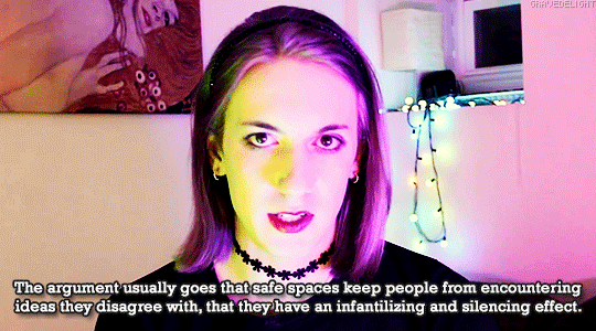 The argument usually goes that safe spaces keep people from encountering ideas they disagree with, that they have an infantilizing and silencing effect. queenofstardust October 13, 2018 Published by queenofstardust View all posts by queenofstardust Published October 13, 2018